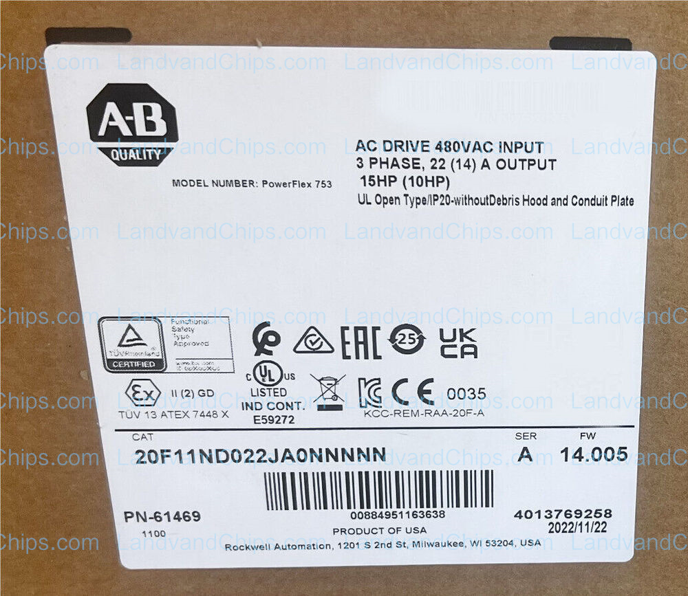 NEW Allen Bradley 20F11ND022JA0NNNNN PowerFlex Air Cooled 753 AC Drive