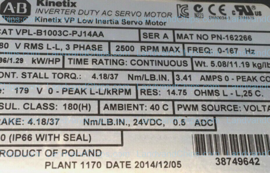 NEW Unopened Allen Bradley VPL-B1003C-PJ14AA Kinetic VP Low Inertia Servo Motor